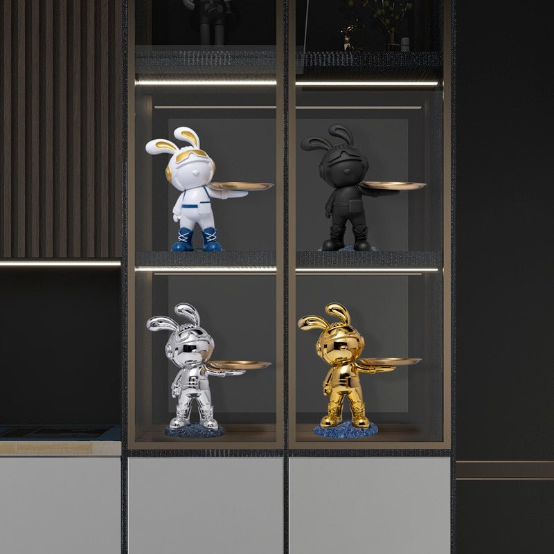 Product information : Material: resin Category: animals Color: regular white pallet rabbit, regular black pallet rabbit, gold plated pallet rabbit, silver plated pallet rabbit. Size Information: Packing list: Resin handicrafts *1